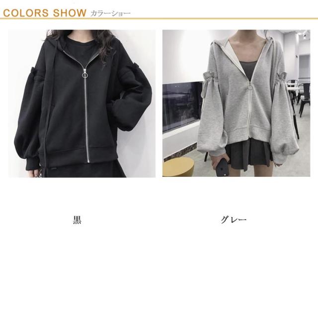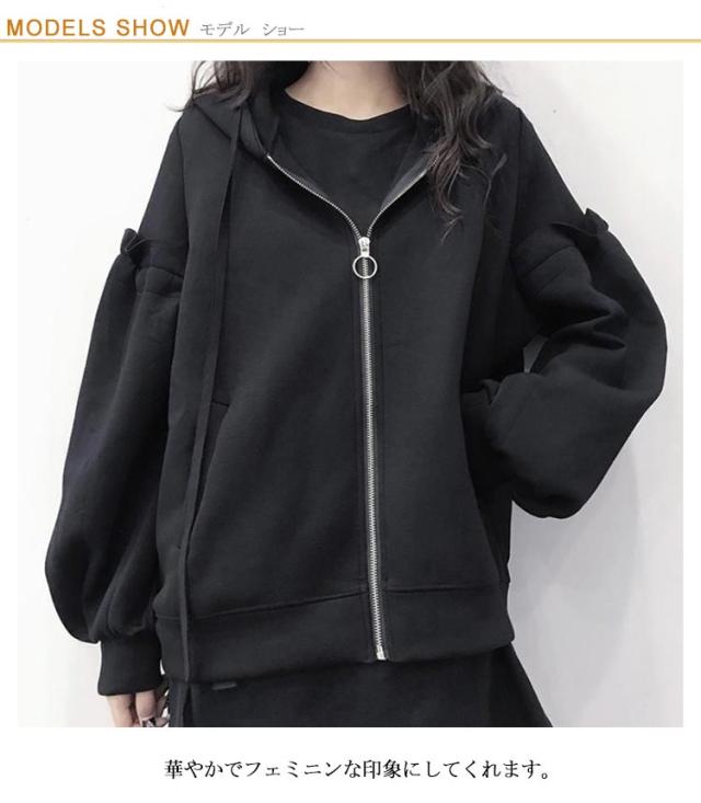 病みかわいい ゆったり サブカル レディース 大きいサイズ 長袖 ジップパーカー お洒落 プルオーバー トップス 春 地雷系 パーカー リボン 可愛い 体型カバー 着痩せ おしゃれ 通勤 日常 地雷系 秋