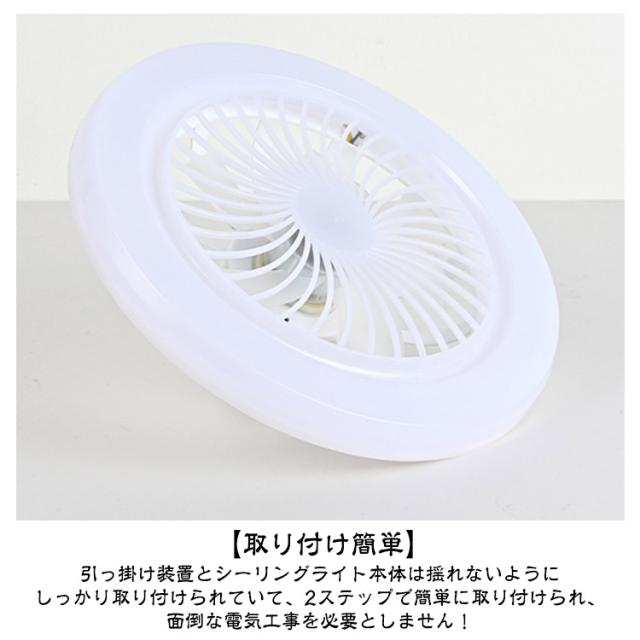 | LED照明と扇風機が一体になった小型のシーリングライトファン。ライト+サーキュレーターでトイレや脱衣所などの換気や送風に。リモコン操作OKです。 【調光調色タイプ】シーリングライトには、調光調色機能があります。明るさや色温度を調整できるため、部屋の雰囲気を変えることができます。シーリングライトの調光調色機能は、部屋の雰囲気を変えたいときに、大変便利な機能です。 【3階段調色調光】照明の色は、3色に変更できます。 【風量3段階調節可能】使用シーンに合わせて3段階幅広いに調整可能です。 【タイマー機能】就寝時や外出時に自動的に運転を操作してくれ安全安心! 【更に!色々な場合で大活躍!】熱がこもりやすい空間に最適!不快な暑さも和らげます。 【取り付け簡単】引っ掛け装置とシーリングライト本体は揺れないようにしっかり取り付けられていて、2ステップで簡単に取り付けられ、面倒な電気工事を必要としません! | |