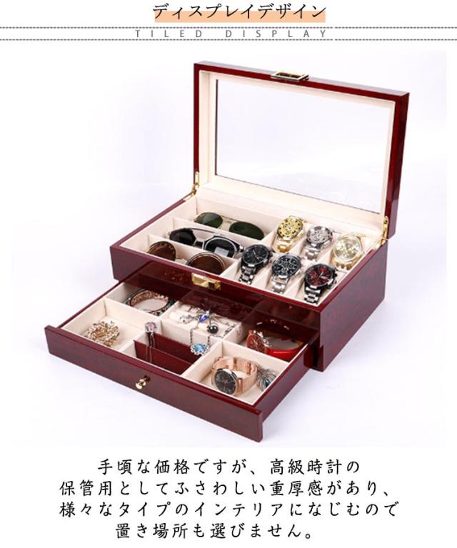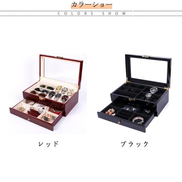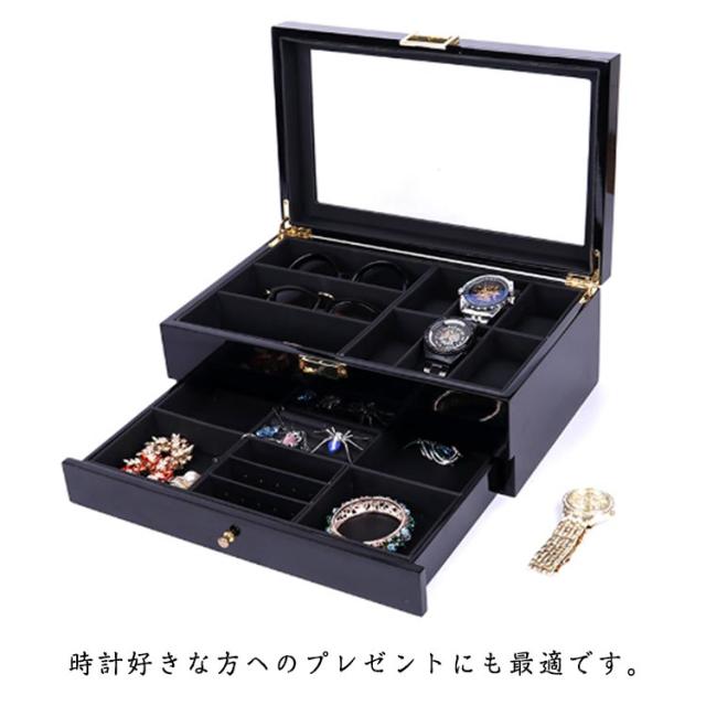 2段 メガネ 腕時計ケース 艶あり 腕時計 6本用 男性 腕時計ケース 時計ケース ピアノ塗装 収納ボックス ディスプレイケース 小物整理 プレゼント 高級ウォッチボックス 高級