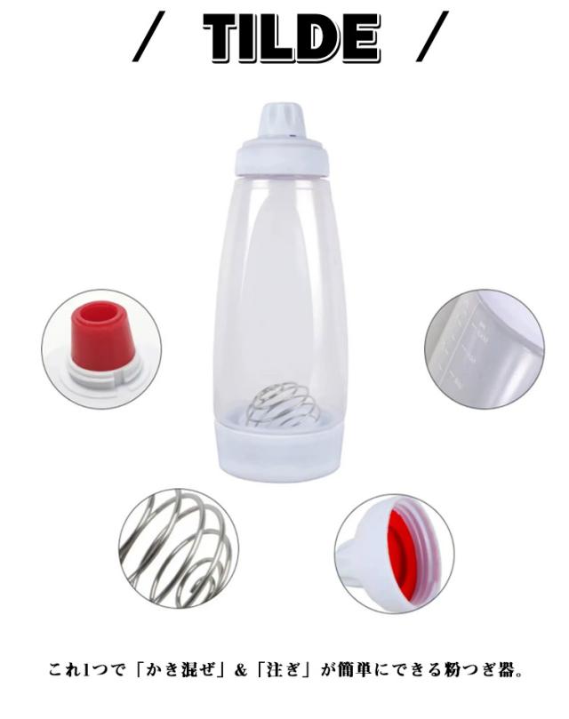 | 【粉つぎ器】 【振るだけ】 これ1つで「かき混ぜ」&「注ぎ」が簡単にできる粉つぎ器。 ボウルいらず! 泡だて器いらず! おたまいらず! 容器に食材と付属のステンレス製ブレンダーボールを入れて振るだけ! たこ焼き・パンケーキ・ドーナッツなどこれひとつで美味しく簡単に作れます。 注ぐ量を調節できるやわらかボトルです。 口が大きく材料が入れやすいです。 | |