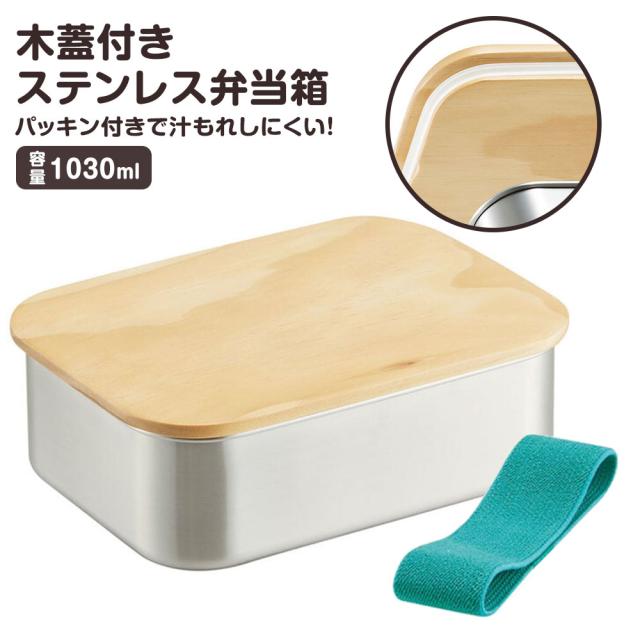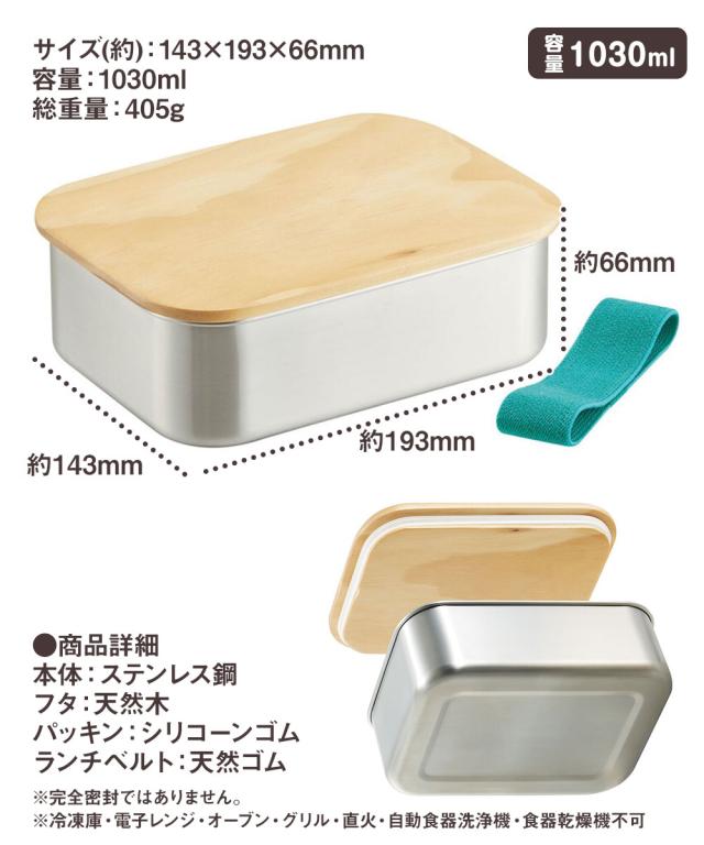 ステンレス ランチボックス 弁当箱 1030ml 1段 木蓋つき パッキン付き ベルト付き 大きめ 大容量 メンズ 男性 高校生 大学生 部活 スポーツ ランチ オフィス 大人 おしゃれ シンプル シルバー STLBT11B