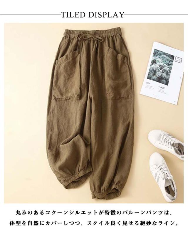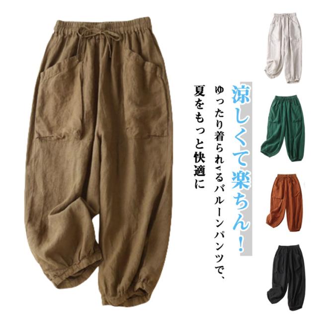 レディース きれいめ 涼しい バルーンパンツ 9分丈パンツ ロングパンツ 夏物 ボトムス サルエルパンツ 薄手 レディース コクーンパンツ 春夏 ウェストゴム 大きいサイズ 体型カバー 部屋着 M-3XL