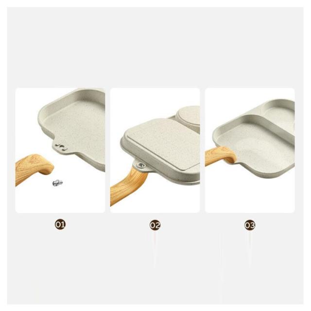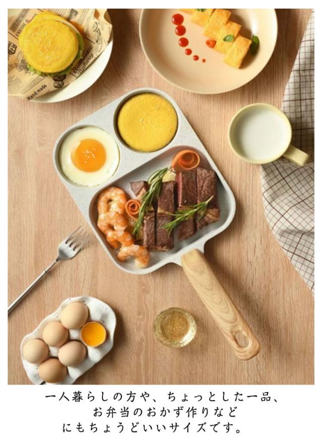 | ・3つの料理が一度にできちゃう!仕切りフライパン ・忙しい朝やお弁当作りに大活躍! ・仕切りが付いているので、別々の調理を1度で済まされます。 ・一人暮らしの方や、ちょっとした一品、お弁当のおかず作りなどにもちょうどいいサイズです。 ・ガス火はもちろんIHにも対応しています。 | |