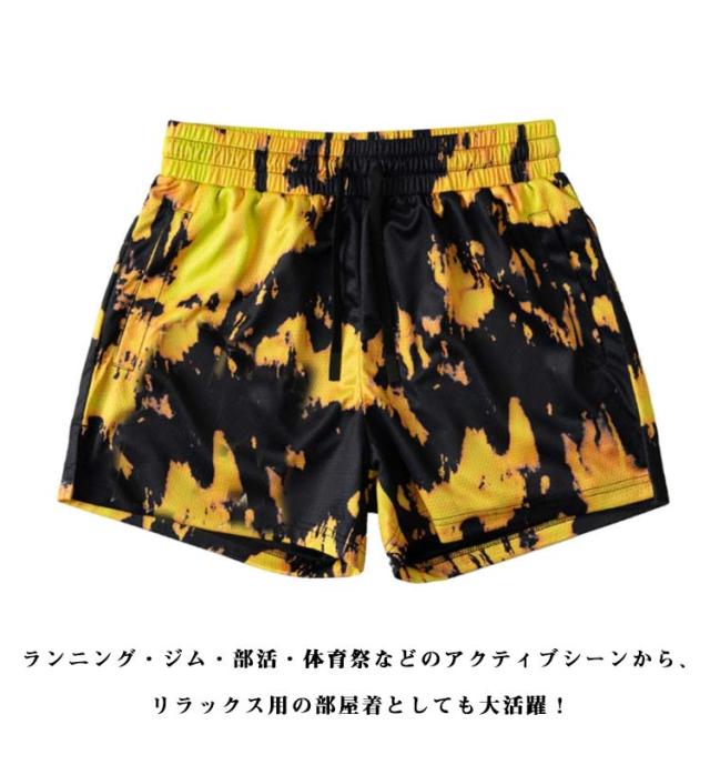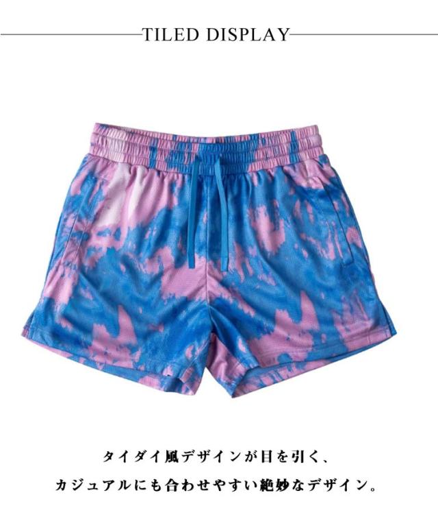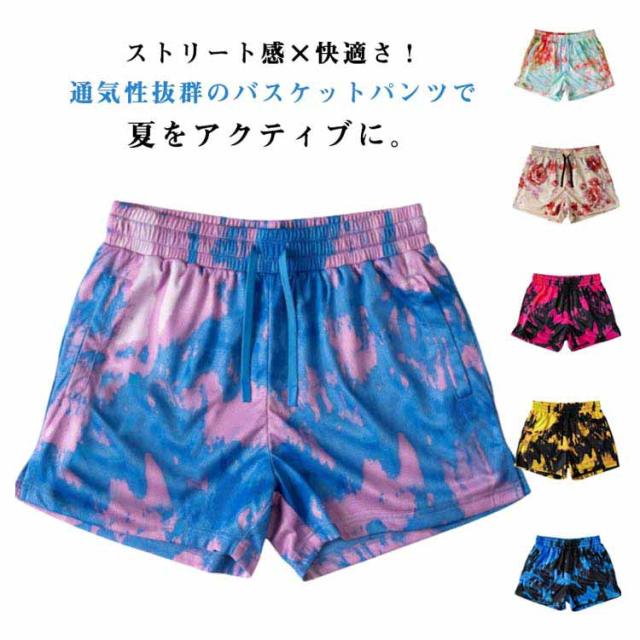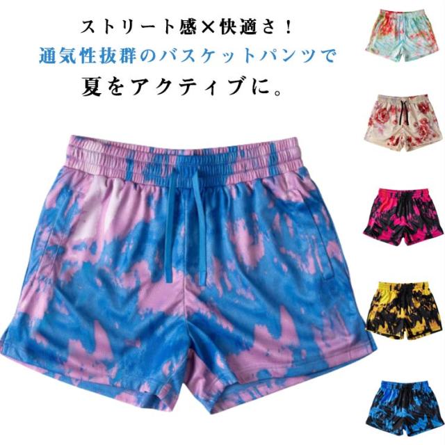 バスパン メンズ バスケットボールパンツ タイダイ風 ハーフパンツ 半ズボン バスケットパンツ トレーニング バスケパンツ バスパン スポーツ ランニング ショートパンツ 運動着 ジュニア 運動会 体育祭 通気性 部屋着 ウエストゴム 夏服