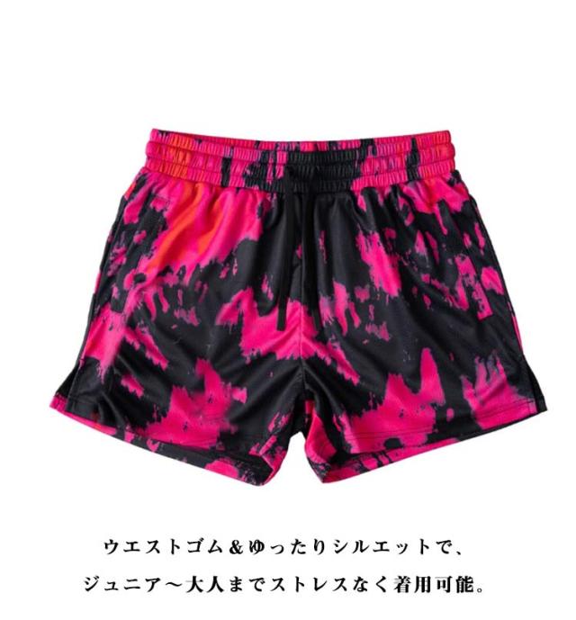 | ストリート感×快適さ!通気性抜群のバスケットパンツで夏をアクティブに。 タイダイ風デザインが目を引く、カジュアルにも合わせやすい絶妙なデザイン。 軽量で通気性のある素材を使用し、運動中の汗ムレを防いで快適な着心地をキープ。 ウエストゴム&ゆったりシルエットで、ジュニア〜大人までストレスなく着用可能。 ランニング・ジム・部活・体育祭などのアクティブシーンから、リラックス用の部屋着としても大活躍! | |
