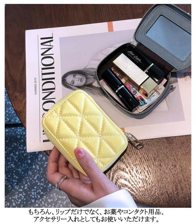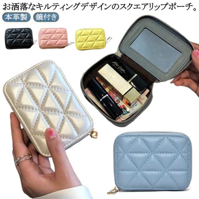 ミラー付き リップケース ミラー キルト リップポーチ 化粧ポーチ 本革 2本 小さめ ミニ 小物ケース おしゃれ 3本 リップケース ミニ化粧ポーチ ケース 大人女子 かわいい 鏡 小物入れ 口紅ケース 口紅入れ 小物ポーチ 鏡付き コスメポーチ 女性 誕生日 プレゼント ギフト