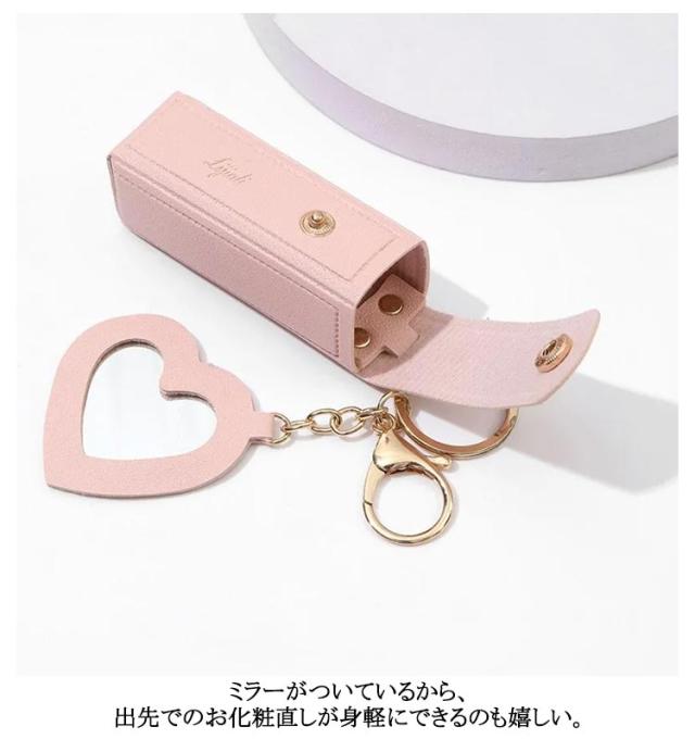 ポーチ 鏡付き リップケース キーホルダー リップポーチ ミラー付き 2本 1本 口紅ケース 口紅入れ 小さめ 2個セット ケース コスメポーチ カラビナ付 ハート 大人 化粧ポーチ PU革 小物収納ケース かわいい おしゃれ 2個セット 韓国 女性 誕生日 プレゼント