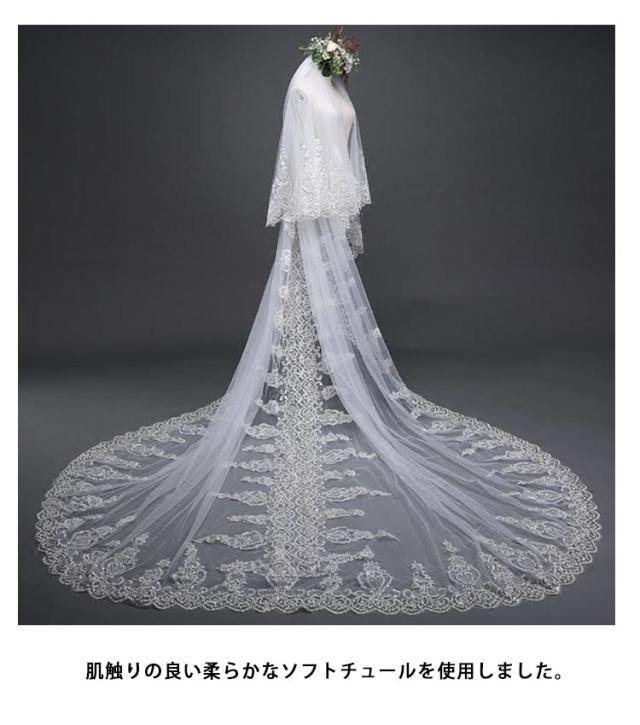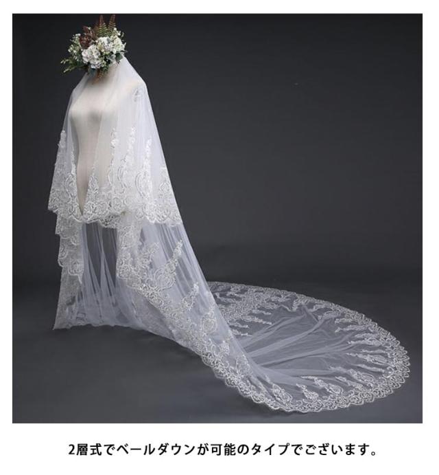 3.8M ウエディングベール ロングベール 2層 ロング コーム付 ベール 贅沢 レース 刺? 華奢 ダウン可能 ウェディング ウェディング エレガント 高級感 おしゃれ 結婚式 花嫁 ヘッドドレス ヘアアクセサリー 髪飾り 披露宴