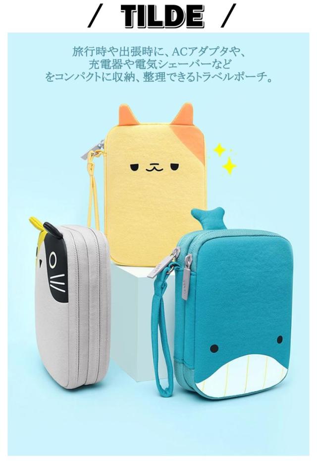 | 充電ケーブルやアダプタなどをコンパクトに収納できひと纏めにできるガジェットポーチ。【セミハードタイプ】 かわいい猫型のガジェットポーチ、ストラップ付きで持ち運び便利。 ガバッと開き中身が見やすい、フルオープンファスナー仕様。 中のポケットでぐちゃぐちゃにならないし探しやすい! 旅行時や出張時に、ACアダプタや、充電器や電気シェーバーなどをコンパクトに収納、整理できるトラベルポーチ。 バッテリーやSDカードなどのカメラ周辺機器収納キャリングケースとしても使用できる収納ケースです。 | |