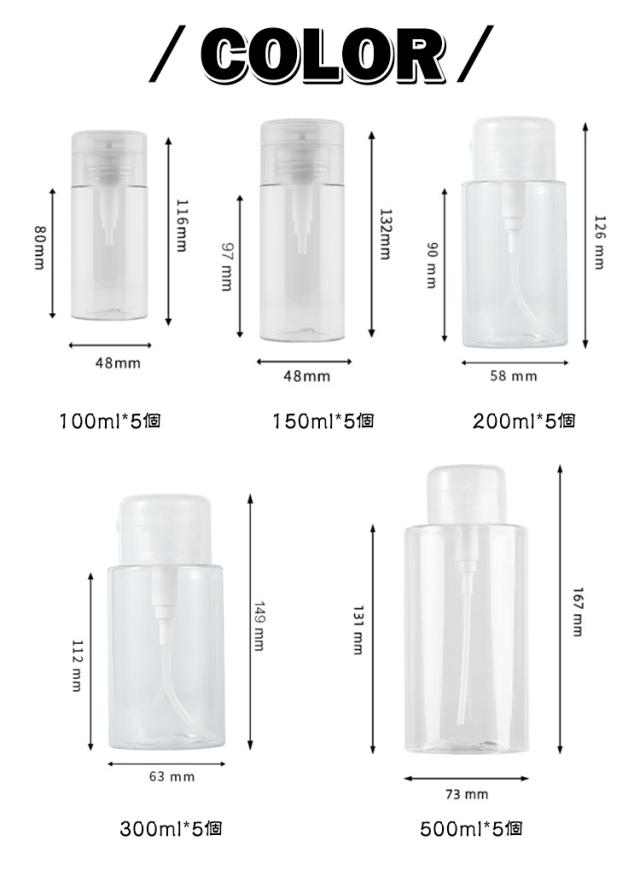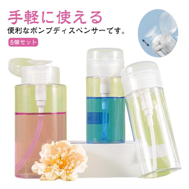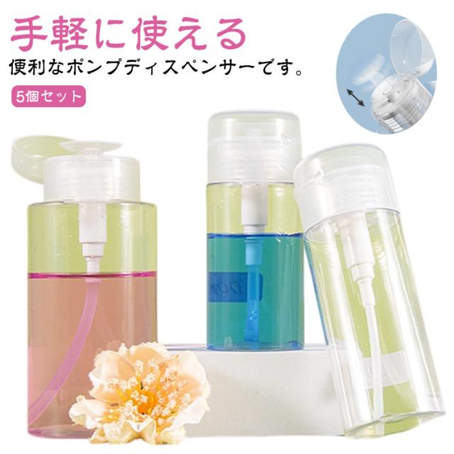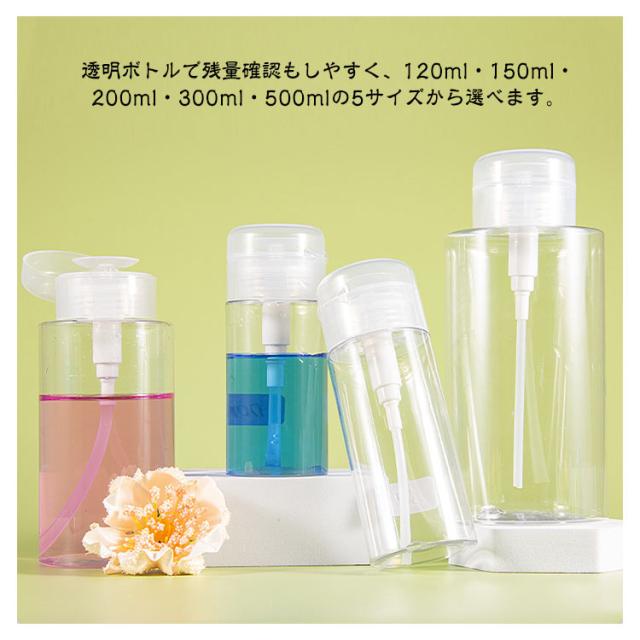 500ml 詰め替え容器 ネイル用品 【5個セット】 120ml 漏れ防止 200ml ポンプディスペンサー ボトル クリア 透明 ポンプ セット プッシュ式 蓋付き 150ml 【5個セット】 除光液 消毒液 アセトン 液体 ネイルリムーバー入れ ネイルケア ネイルオフ クリーナー
