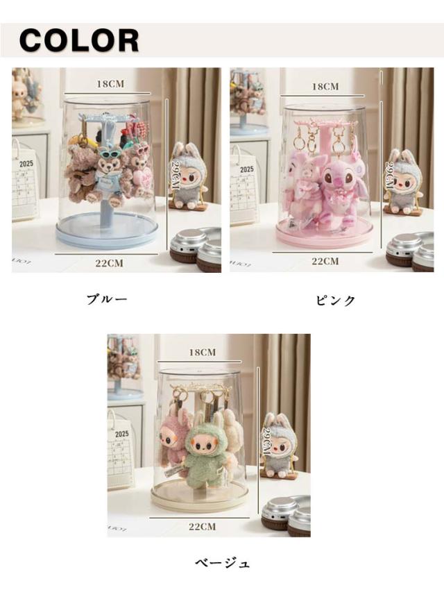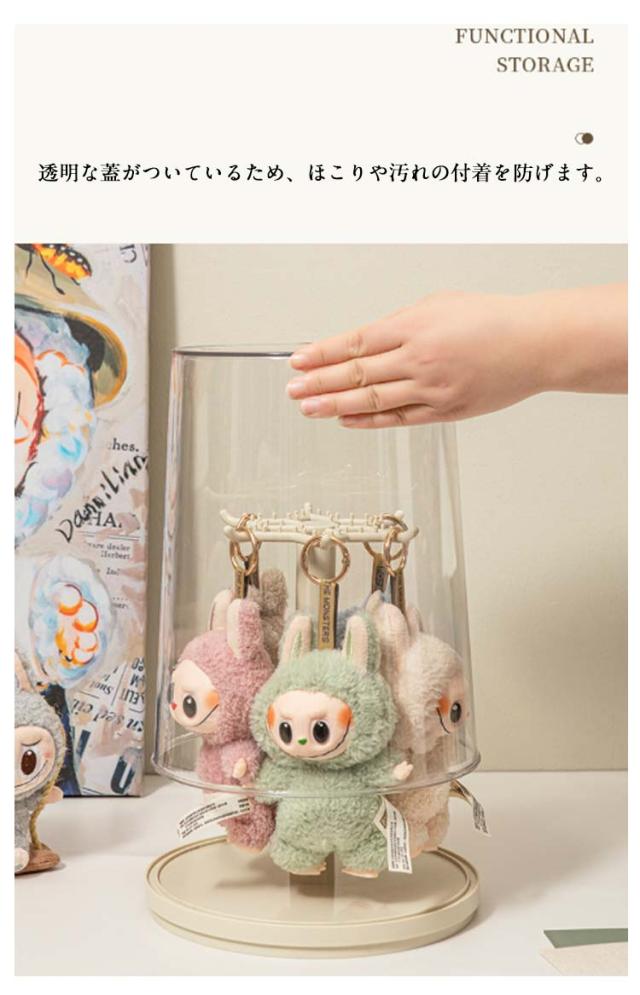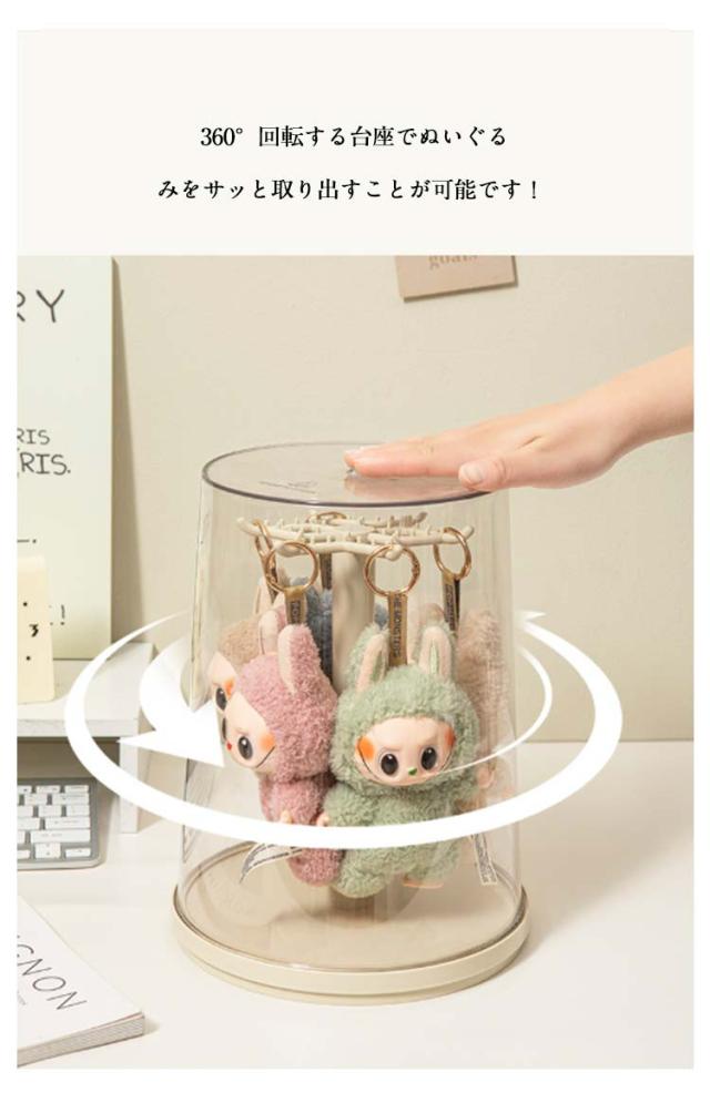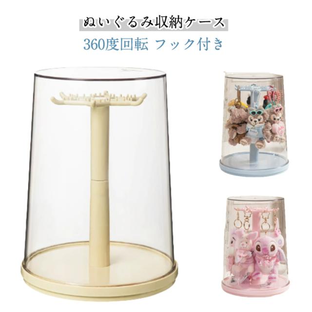 フィギュアケース 防塵 大容量 クリア 360度回転 ぬいぐるみ収納ケース 透明 円柱 ディスプレイケース ぬいぐるみ収納ボックス おもちゃ収納ボックス フック付き コレクションケース 展示用 おもちゃ収納ボックス 蓋付き