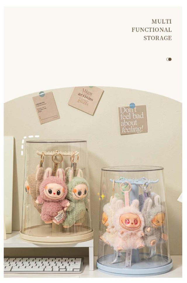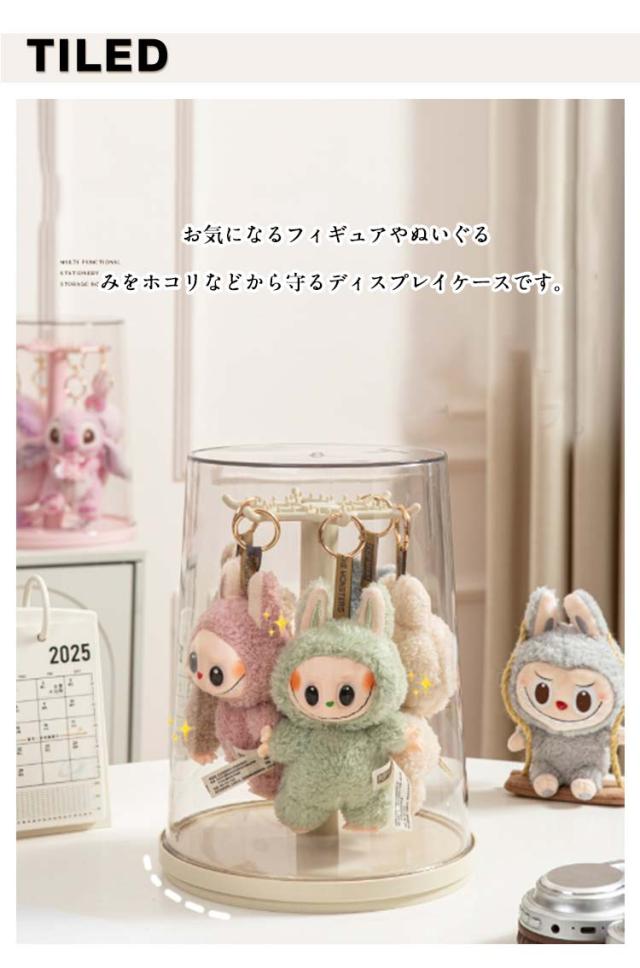 | ぬいぐるみ収納ケース 360度回転 フック付き お気になるフィギュアやぬいぐるみをホコリなどから守るディスプレイケースです。 360°回転する台座でぬいぐるみをサッと取り出すことが可能です! 透明な蓋がついているため、ほこりや汚れの付着を防げます。 | |