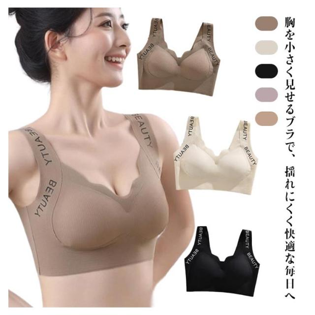 シームレス レディース 無地 脇高設計 脇肉カバー 胸を小さく見せるブラ 快適 ソフトサポート 通気性 胸を小さく見せるブラ バスト ノンワイヤー 着痩せ 見せない下着 着心地が良い ストレッチ