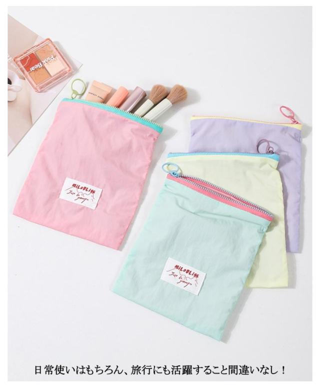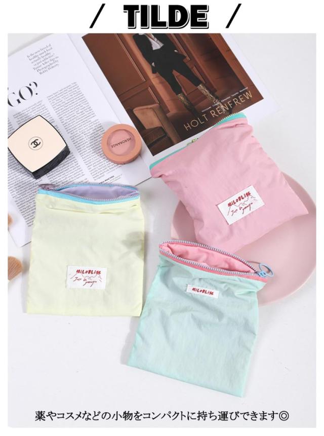 | 小さめバッグにも入れやすいフラットポーチ。【2個セット】 薬やコスメなどの小物をコンパクトに持ち運びできます◎ コンパクトな見た目でも収納力は十分あります。 日常使いはもちろん、旅行にも活躍すること間違いなし! リサイクルポリエステル素材を使用。環境にやさしくさらに撥水・抗菌加工を施して水にもつよく普段使いにピッタリです。また手洗い可能で清潔に保ちます。 | |