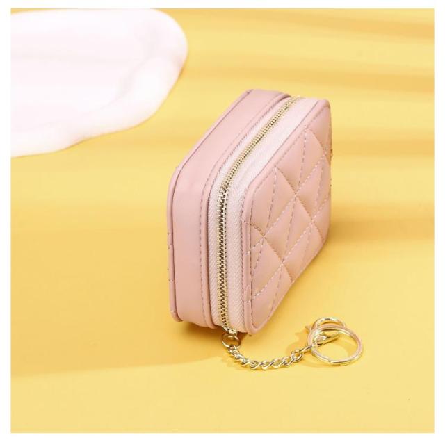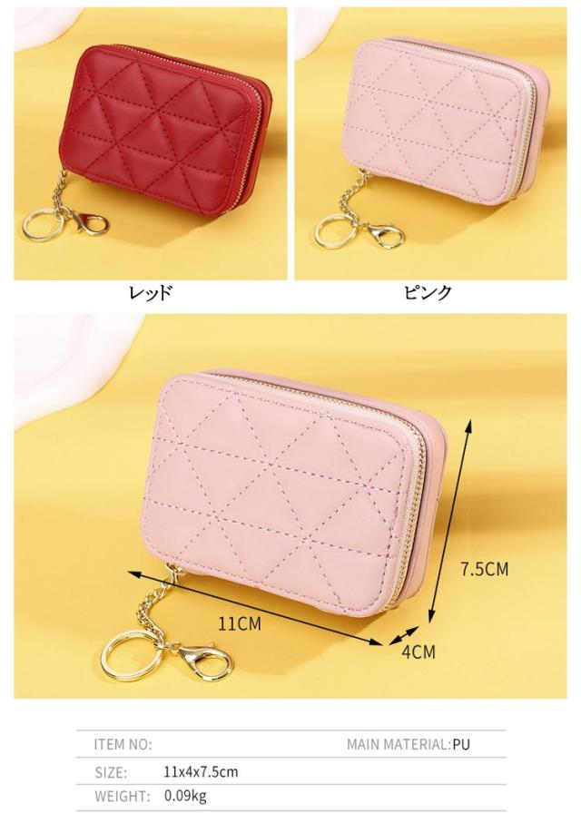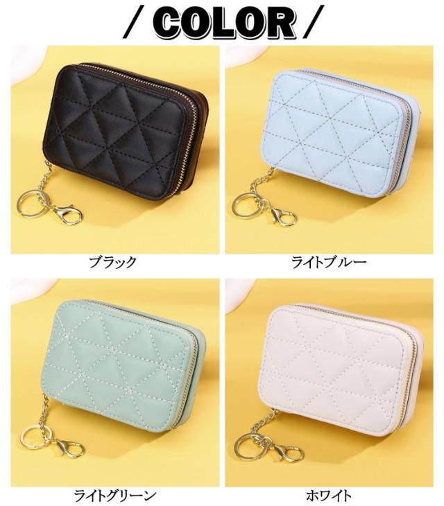 ミニ ミラー付き 鏡付き 小物入れ 口紅ケース 2本 コスメポーチ リップケース 小さめ ポーチ ケース カラビナ付 キーホルダー リップケース 化粧ポーチ 口紅入れ 小物ポーチ PU革 キルト 大人 かわいい おしゃれ 鏡 ミラー
