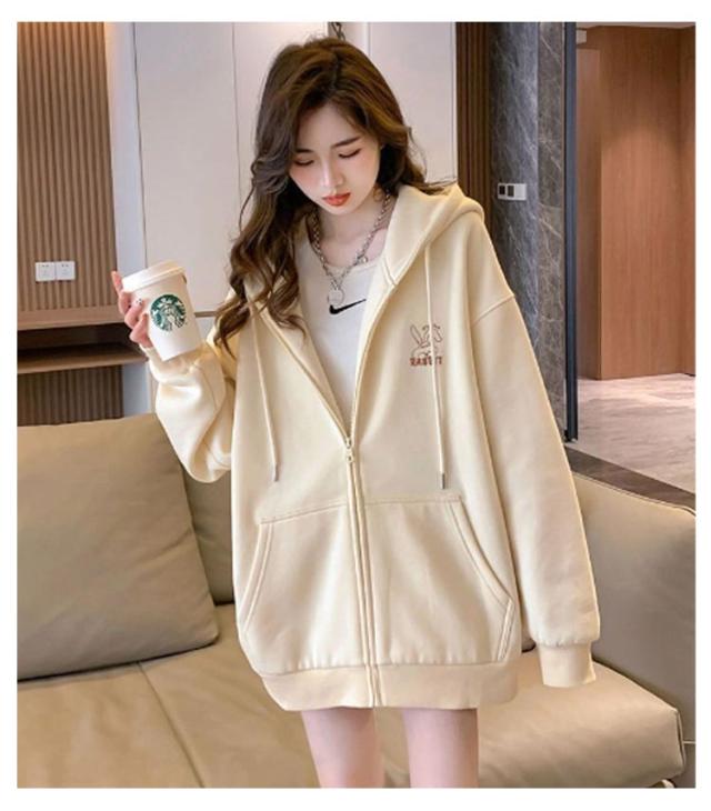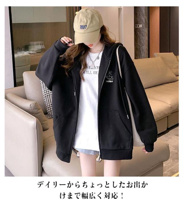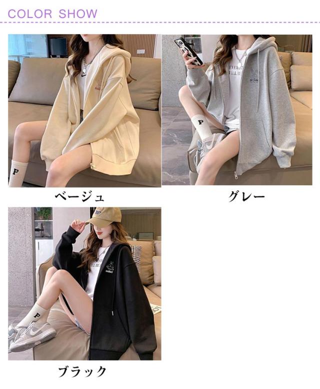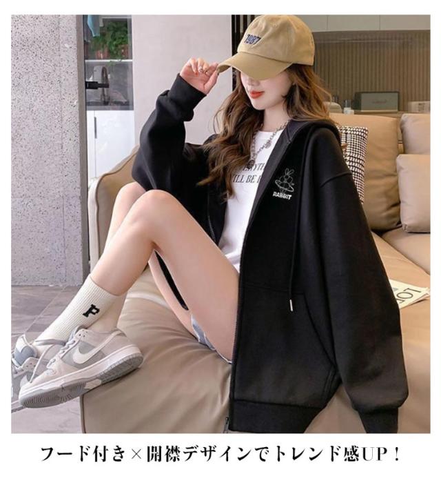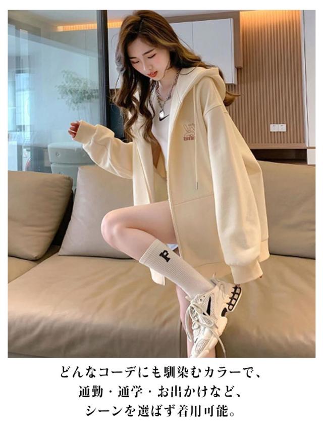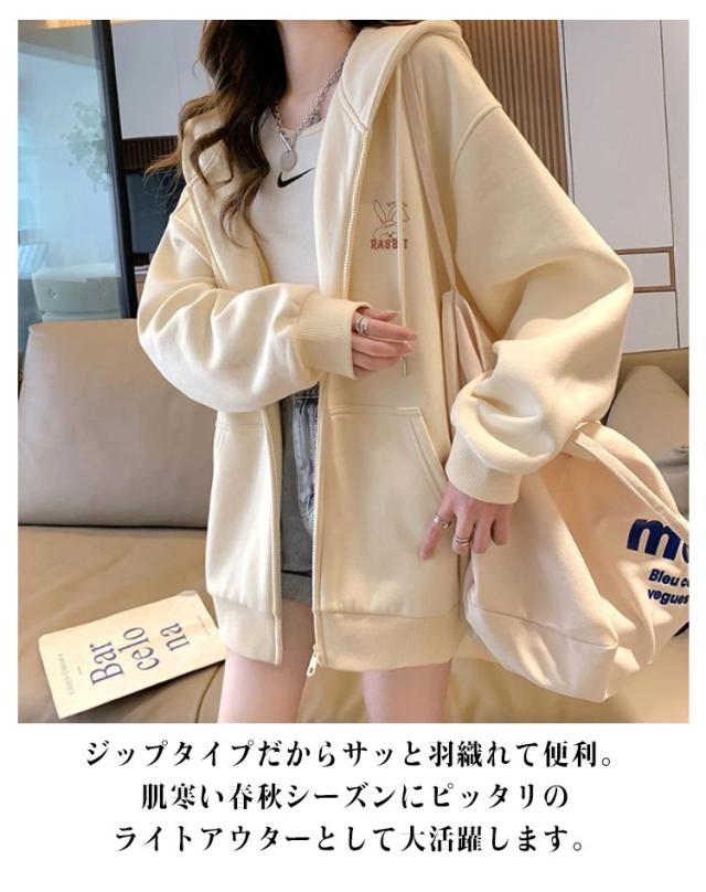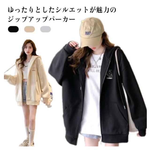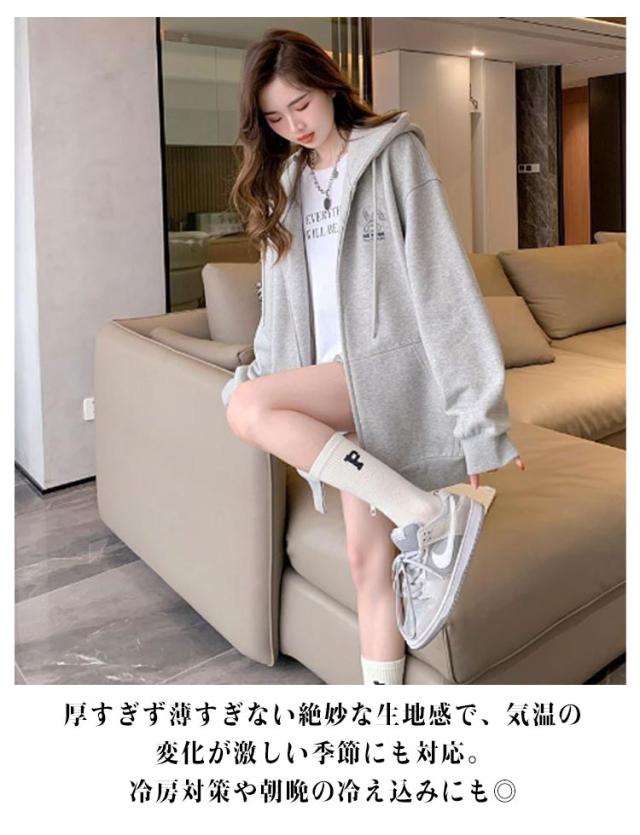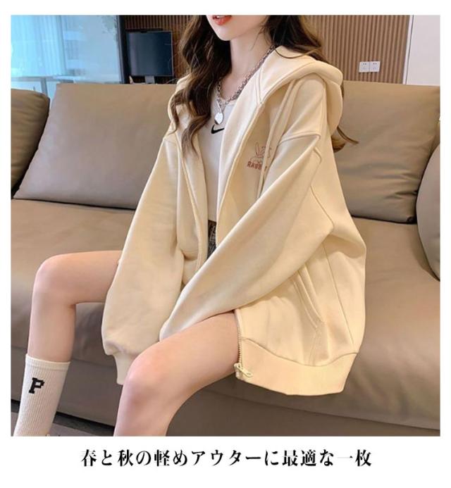 春服 長袖 フード付きパーカー フードジャケット レスウェット 秋服 羽織り ストリート系 ディース アウター ジップパーカー レスウェット 無地 韓国風 ゆったり シンプル かわいい 学生 通学 通勤 ライトアウター 体型カバー