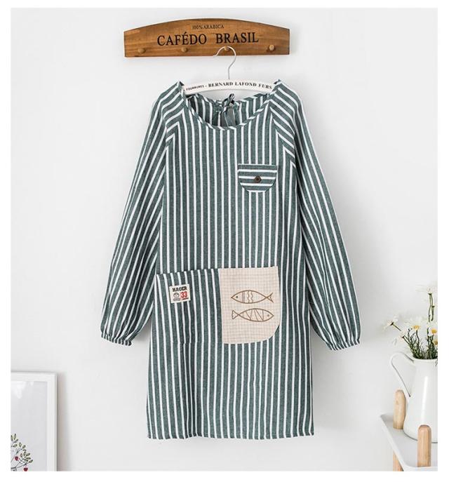かっぽう着 かわいい エプロン 送料無料 レディース ストライプ 送料無料 ポケット 後ろリボン 割烹着 ロング スモック 保育士 介護士 母の日 プレゼント 給食