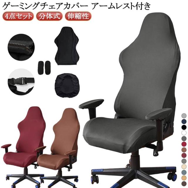 ゲーミングチェア ゲーミングチェアカバー 肘置き ゲーミングチェア 椅子カバー ゲーミングチェアカバー 分体式 汚れ防止 保護 伸縮性 洗濯可能 座面 アームレスト付き 回転式椅子カバー ストレッチ 着脱簡単 シンプル カバー オフィス 自宅