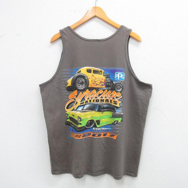 【商品名】 XL★古着 タンクトップ メンズ ホットロッド シラキュース クルーネック 濃ベージュ