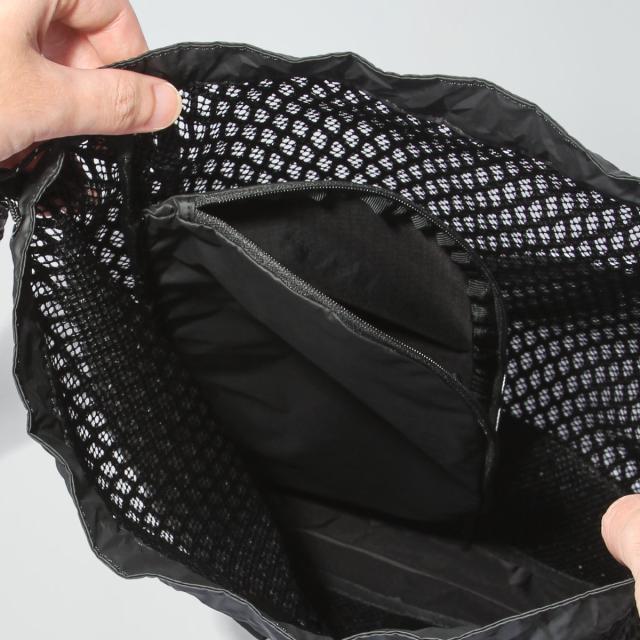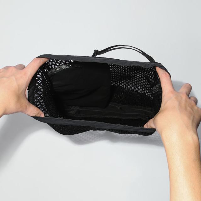 | アクティブムードを高めてくれる毎日の相棒。中身が見やすく出し入れもスムーズに行えるデザイン。 容量がありながらも持ち運びのしやすいサイズ感で、使い勝手抜群の巾着型ワンショルダーバッグです。 メイン素材には、表の太いラッセルと裏のラッセルメッシュが一体となった、ダブルメッシュを採用しています。 軽量性とストレッチ性に加えて、保形性も兼ね備えた特殊素材です。 間口と底部は「Active」シリーズで使われているポリカネートコーティングのリップストップで切り替えられていて、これは裂けにくい特性がある上に、軽量性と軽い撥水性を備えています。 従来のナップサックとは異なり、間口のドローコードとショルダーストラップがセパレートしているため、肩掛けしたままでも間口の開閉や中身の出し入れがしやすいのが特徴。 またサイドには、内側へのアクセスがダイレクトに行えるファスナーも配置しています。 大型の内ポケットは中身が見えない別布切り替えにより、セキュリティ面にもしっかりと配慮されているのがポイント。 外側のテープウェイビングには、カラビナやポーチ、小物の外付けなどもできます。 デイリー使いはもちろんのこと、夏はビーチアクティブなどでも重宝するアイテムです。 |