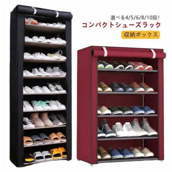 シューズラック 靴箱 下駄箱 カバー付き 大容量 4 5 6 8段 10段 防塵カバー 玄関収納 シューズ棚 簡易シューズラック 収納ボックス 大容量