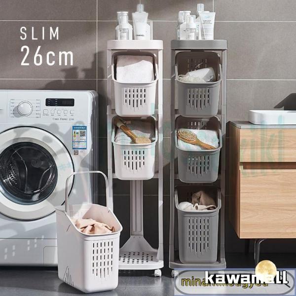 ランドリーバスケット スリム 3段 キャスター付き 大容量 斜め 四角 スクエア 角形 洗濯カゴ ランドリーワゴン