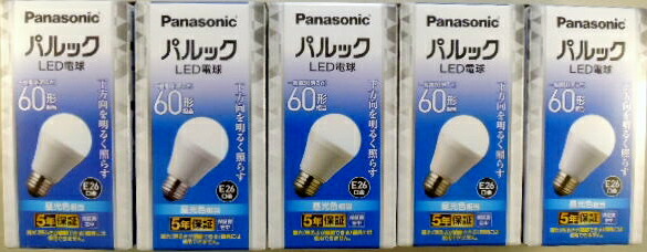 5個セット パナソニック LED電球 下方向 60W形 LDA7D−HS6 昼光色