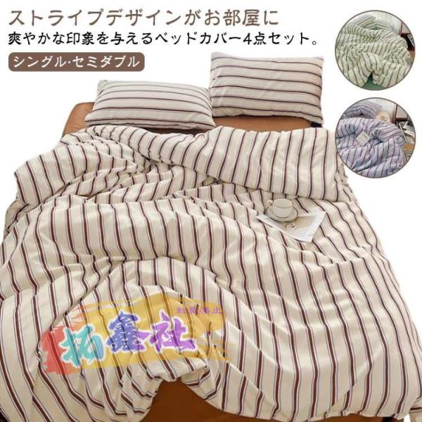 寝具カバーセット シングル 3点セット ストライプ 掛け布団カバー かわいい 寝具 綿100% 布団カバーセット フラットシーツ 枕カバー 防ダニ シ