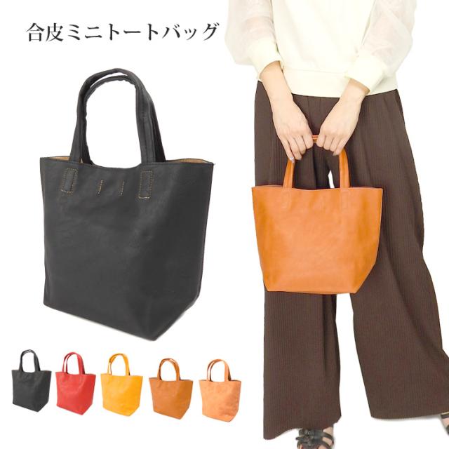 【送料無料】ミニトートバッグ 小さめ レディース 全5色 合成皮革 合皮 フェイクレザー 鞄 かばん 黒 赤 黄 ブラック レッド イエロー オレンジ サーモンピンク 2993