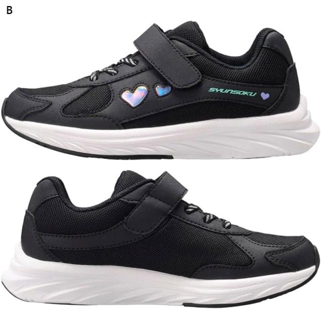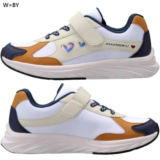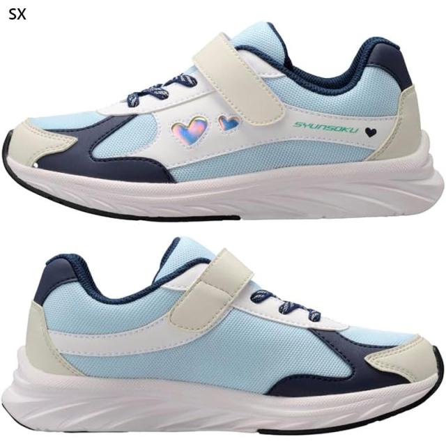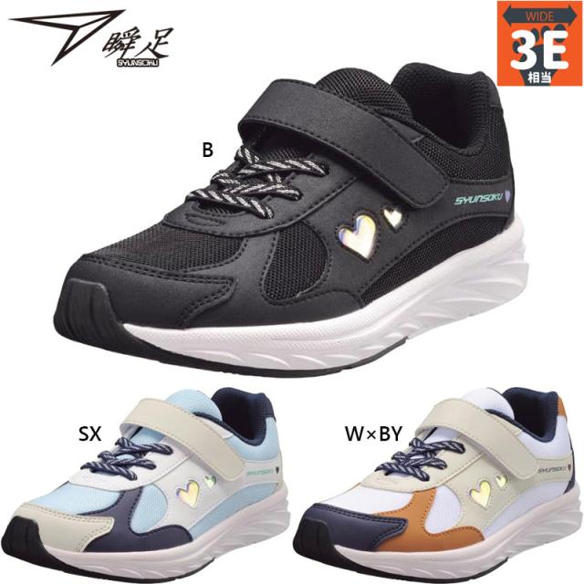 3E 幅広 ワイド 瞬足 ジュニア キッズ ガールズ 女の子 靴 シューズ ベルクロ マジックテープ ハート 軽量 遊び 運動会 通学 ホワイト 白 ブラック 黒 ブルー 青 送料無料 syunsoku LEJ8130