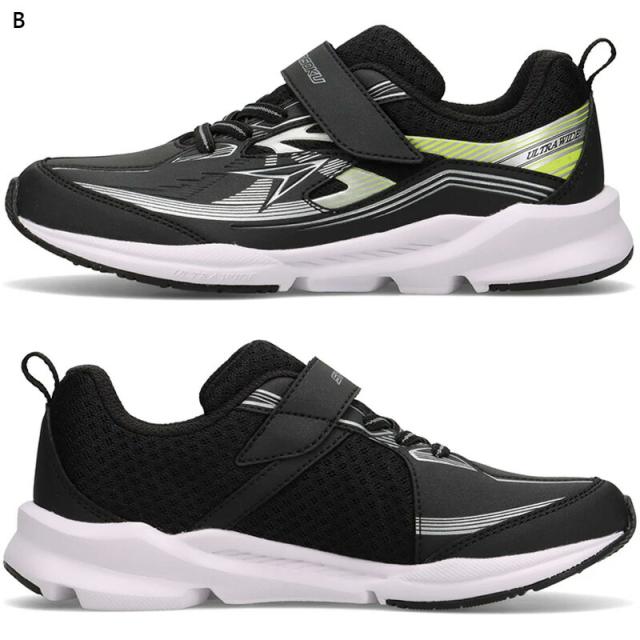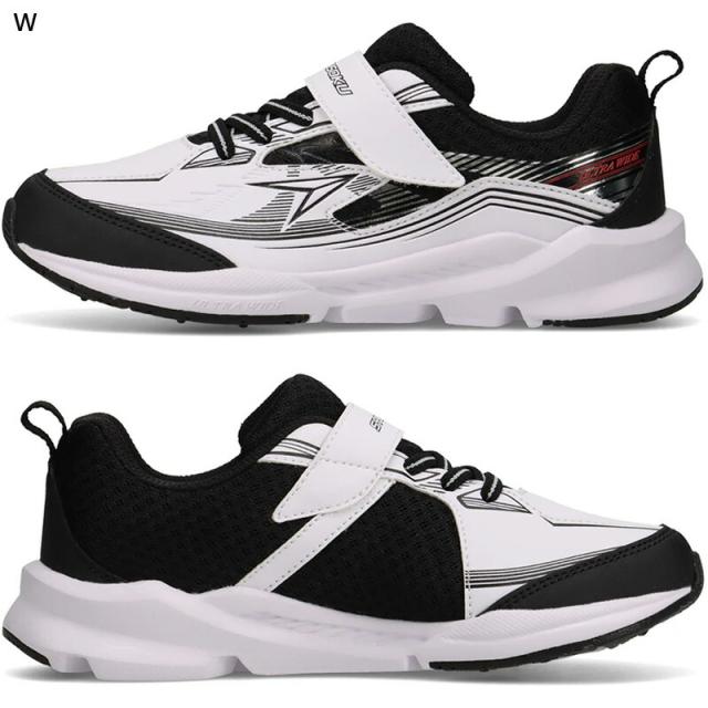 左右非対称ソール&特殊配合素材ERPを搭載したウルトラワイドソールは、跳ねる力・進む力をしっかりサポート。さらに3E設計で足幅が広めのお子さまにもぴったりフィット!