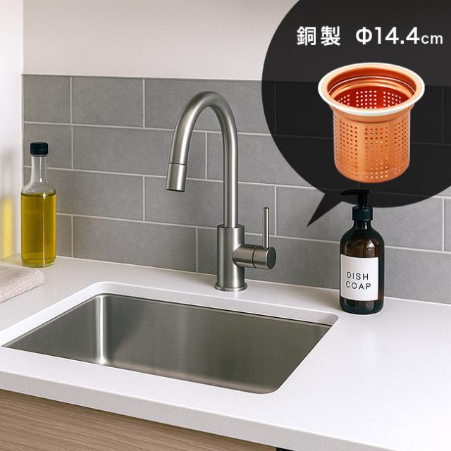 銅製ゴミカゴは、銅イオンの優れた抗菌力でぬめりを抑え、毎日清潔なシンクまわりを保ちます。