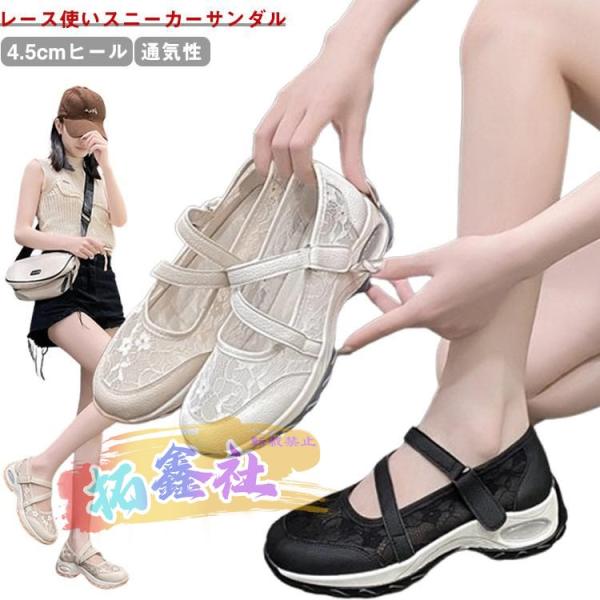 スポーツサンダル スニーカー サンダル パンプス ストラップ レース 厚底 スニーカーサンダル 4.5cmヒール おしゃれ きれいめ 春 夏 ローカッ
