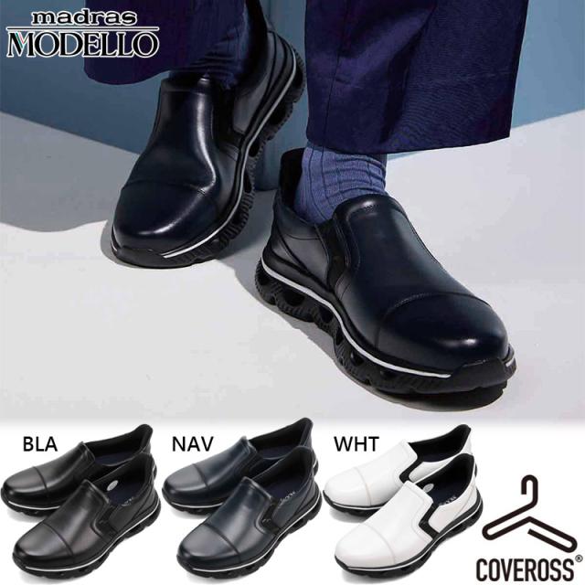 3E相当 モデロ メンズ スリッポンレザースニーカー スニーカー 靴 シューズ 本革 シンプル COVEROSS 抗菌防臭 消臭 ビジカジ ホワイト 白 ブラック 黒 ネイビー 送料無料 MODELLO DM3343