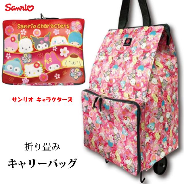 送料無料 サンリオ 折り畳み キャリーバッグ 保冷 保温 キティちゃん キキララ クロミ ポチャッコ マイメロディ シナモロール ポムポムプリン ハンギョドン 買い物 レジカゴ 軽量 コンパクト 折りたたみ キャスター付き タイヤ付き キャンプ BBQ 和柄 和風 ピンク 赤