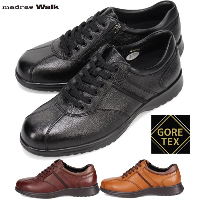 4E 幅広 ワイド マドラスウォーク メンズ 靴 シューズ カジュアル 防水 ゴアテックス 軽量 ファスナー ローカット レースアップ ブラック 黒 ブラウン 茶色 送料無料 madras Walk MW8010