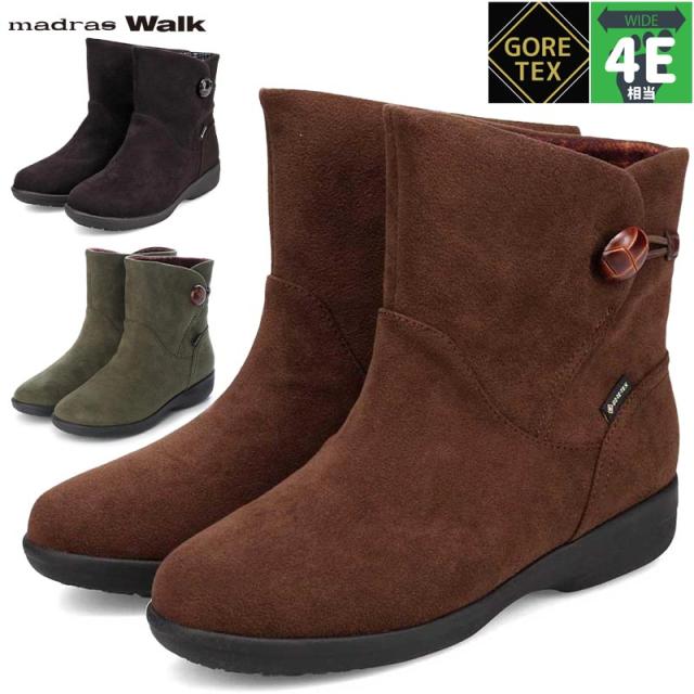 4E 幅広 ワイド マドラスウォーク レディース ブーツ 靴 シューズ ショート おしゃれ 防水 透湿 ゴアテックス 黒 雨 雪 冬 ブラック 黒 ブラウン カーキ 茶色 送料無料 madras Walk MWL2109