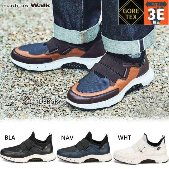 3E 幅広 ワイド マドラスウォーク メンズ ミドルカット スニーカー 靴 シューズ ゴアテックス 防水 透湿 濡れない 蒸れない レザー 革 ホワイト 白 ブラック 黒 ネイビー ブラウン 茶色 送料無料 madras Walk MW9501S