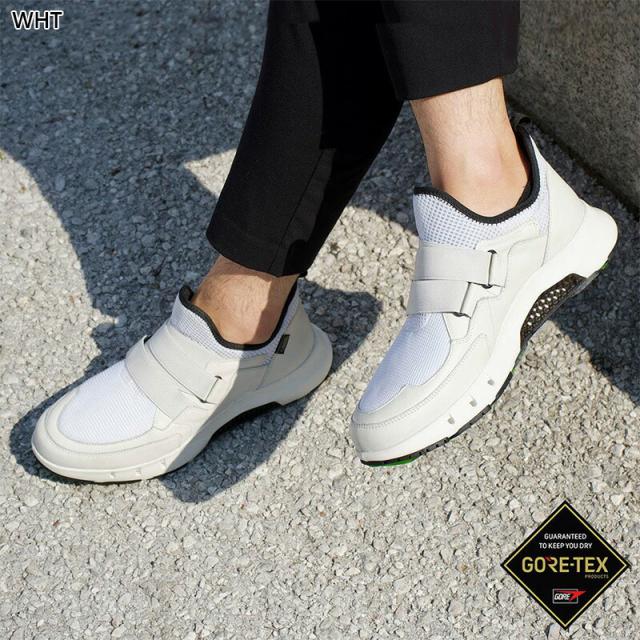 GORE-TEX サラウンドテクノロジーを搭載し、全ての天候で常に足元をサラッと快適に保つスニーカーアイテムです。雨に強い防水性を備えながらも、アウトソール側面には通気口(サイドベント)が設けられており、靴内のムレを排出する事が最大の特徴です。加えて、アウトソール内に水が溜まりにくい排水設計が充実。甲革にはDritan製法(by ecco Leather)によって鞣された防水キップレザーを使用。革製造過程で余計な水の使用を極限に抑えられた、地球と人に優しいサスティナブルレザーをとなります。