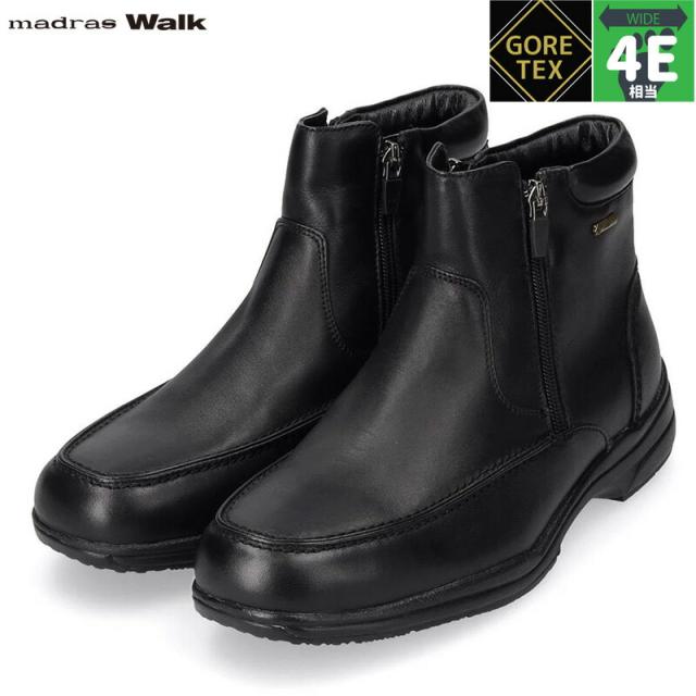 4E 幅広 ワイド マドラスウォーク メンズ ショート ブーツ 靴 シューズ ゴアテックス 防水 透湿 防滑 クッション性 牛革 革靴 濡れない 蒸れない ブラック 黒 送料無料 madras Walk SPMW5479