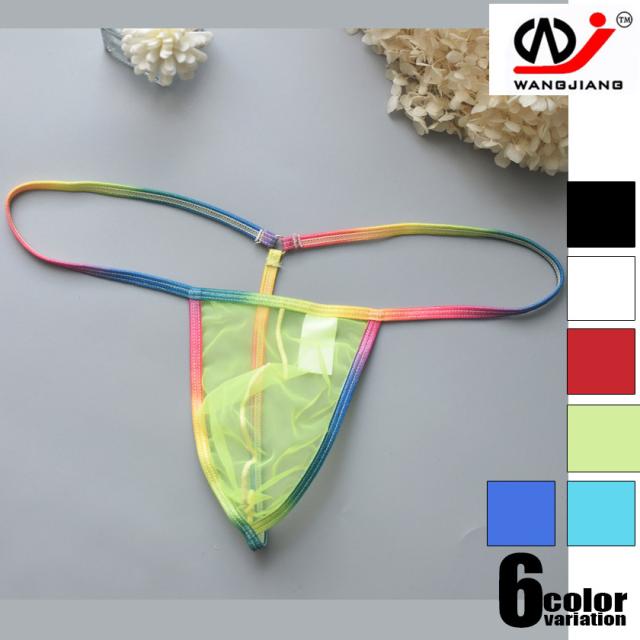 メンズTバック WJ/ダブルジェイ レインボー スケスケ スベスベ ツルツル 透け シースルー 男性下着 メンズ パンツ セクシー フロント立体縫製 サイドストリング