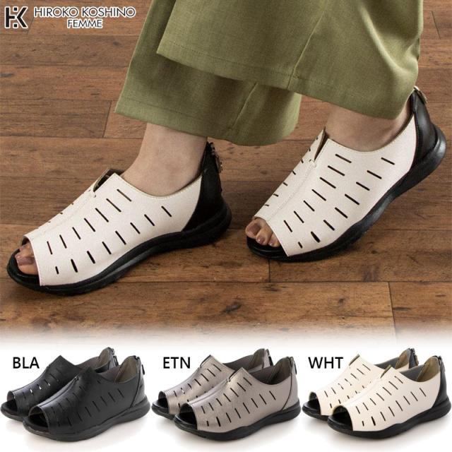 3E ヒロココシノファム レディース 靴 シューズ カジュアル おしゃれ オープントゥ サンダル コンフォート シンプル シック 軽量 お出かけ 旅行 ホワイト 白 ブラック 黒 ブラウン 茶色 送料無料 HIROKO KOSHINO FEMME HRL3006