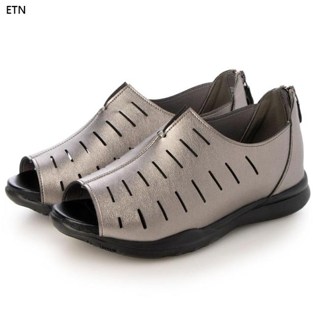 シックな素材感のオープントウカジュアルシューズ