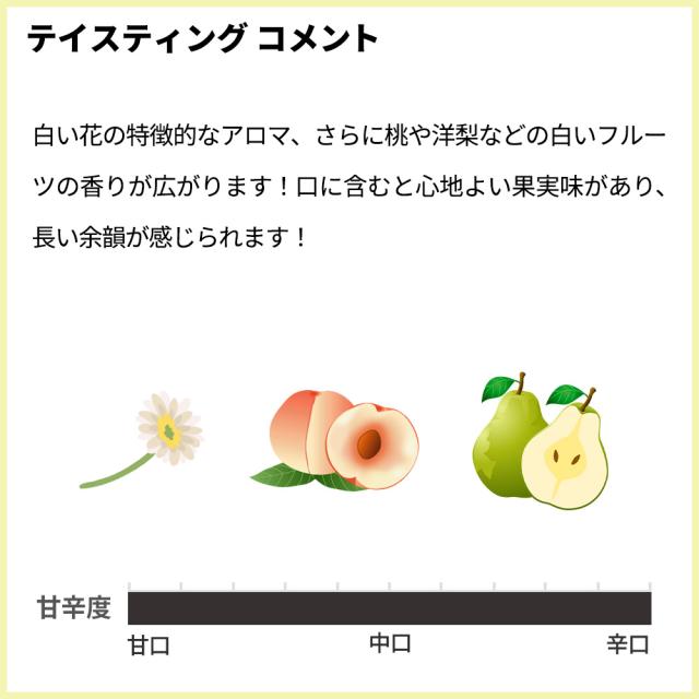 ![]() ■ぶどう品種:シャルドネ100% ■発酵・熟成:ステンレスタンクで熟成 フランスのRVF誌で2012年フランス年間最優秀生産者組合を獲得!畑、セラー、ブレンドの段階でこまかく分析、分類されたワインを組み合わせて、目指すキュヴェを造る! レストラン様を中心に安定した人気を誇るシャルドネ100%! グリーンがかった輝きのある黄金色!白い花の特徴的なアロマ、さらに桃や洋梨などの白いフルーツの香りが広がります!口に含むと心地よい果実味があり、長い余韻が感じられます!フレッシュな味わいの傑作シャルドネ! 南仏ながら、きれいな酸とシャルドネの心地よい果実味の極旨シャルドネが限定で少量入荷! |