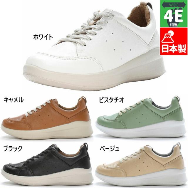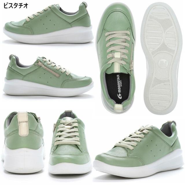 4E 幅広 ワイド スポルス レディース SP2001 ムーンスター MOONSTAR 靴 シューズ コンフォート 日本製 天然皮革 ステア 撥水 衝撃吸収 ホワイト 白 ブラック 黒 ベージュ グリーン 送料無料 SPORTH