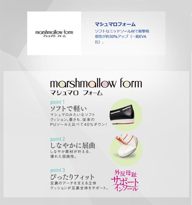 歩行時の足・膝・腰にかかる負担を和らげるよう衝撃を吸収する素材を使用しています。