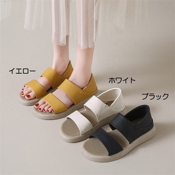 厚底サンダル サンダル お洒落なサンダル 厚底 サンダル 歩きやすい レディース かかとあり 夏 靴 女性 大人 美脚 シューズ 旅行 履きやすい カジュアル 軽量 シンプル イエロー/ホワイト/ブラック 22.5-25.0