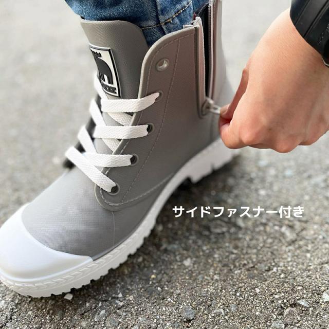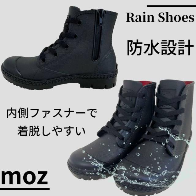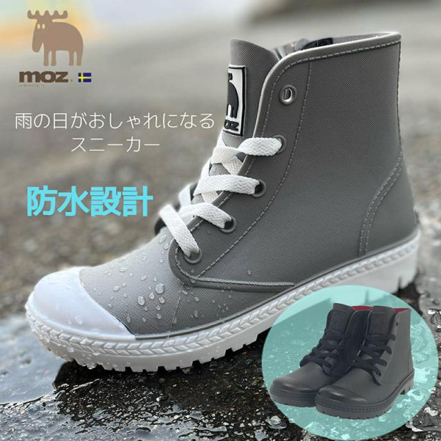 モズ レディース 靴 シューズ レインシューズ スニーカー ハイカット サイドファスナー 雨天 梅雨 防水 長靴 ブラック 黒 グレー 灰色 送料無料 moz MZ-8508