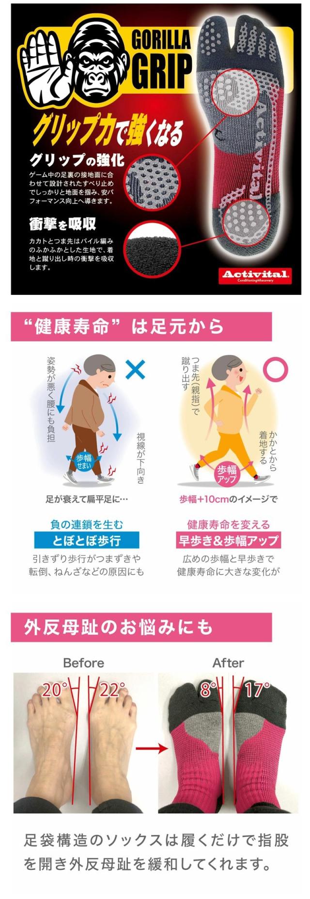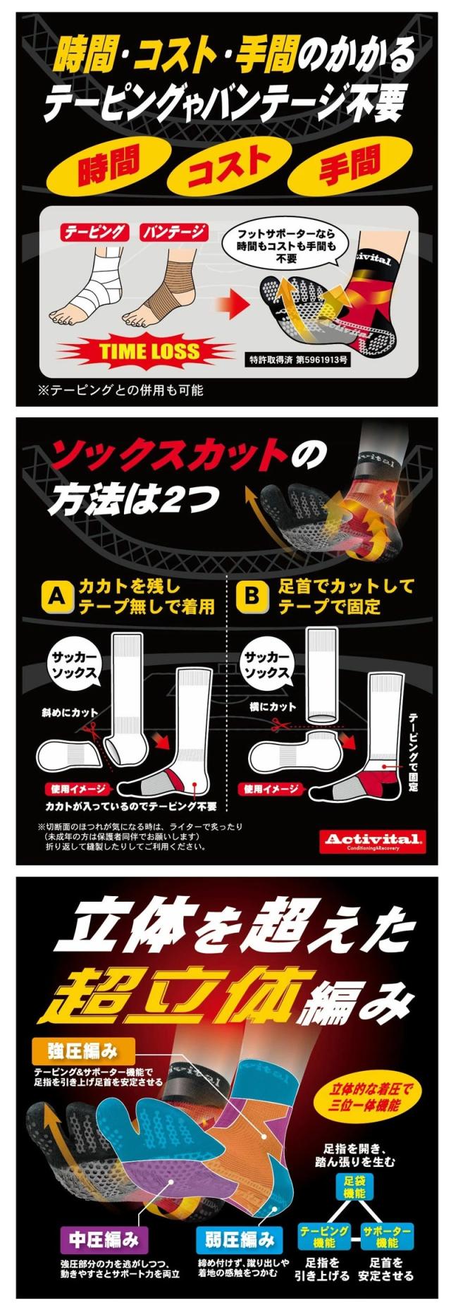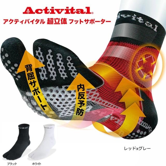 Activital アクティバイタル 超立体 フットサポーター / 足首 捻挫 予防 外反母趾 靴下 ソックス グリップ スポーツ サッカー フットサル バレーボール バドミントン 卓球 登山 ロコモ メンズ レディース ショートソックス グッズマン