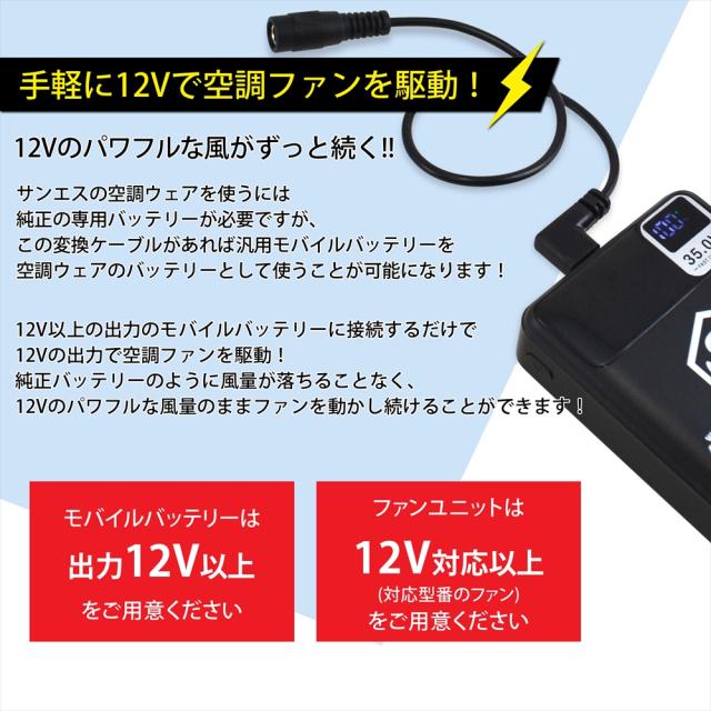 サンエス 変換ケーブル 2025年 24V RD9530H Global Label 12V RD9210H RD9110H RD9010H 対応 Type-C 変換アダプター モバイルバッテリー L型 12V ファン付き作業服 USB-C タイプC 空調風神服 海外版 グローバルラベル 空調ファンウェア 空調ファン 空調ウェア 【12V-C】